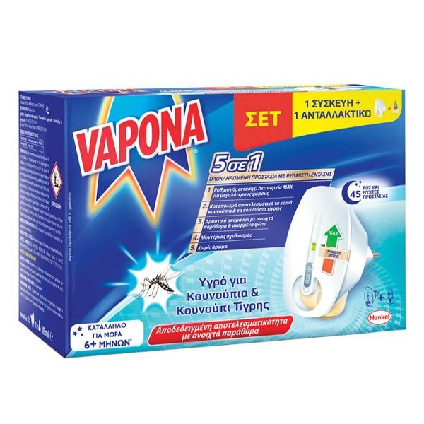 VAPONA ΑΝΤΙΚΟΥΝΟΥΠΙΚΟ ΥΓΡΟ ΗΛΕΚΤΡΙΚΟ ΜΕ ΡΥΘΜΙΣΤΗ ΕΝΤΑΣΗΣ (45 ΝΥΧΤΕΣ)